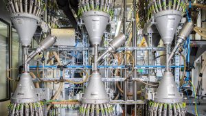 Als Ausgangsmaterial für die Gehäuse dienen diverse Kunststoff-Granulate, die durch ein Röhrensystem zu den Spritzgussmaschinen transportiert werden. Das geschieht mithilfe von Vakuumpumpen, die einen Unterdruck herstellen. Wie die gute alte Rohrpost befördern die Pumpen die unterschiedlichen Granulate dorthin, wo sie gerade gebraucht werden. Dabei führt der Luftstrom zwangsläufig aber auch etwas Staub mit sich. Um zu verhindern, dass dieser die Pumpen beschädigt, sind in den Abluftröhren Filter installiert.